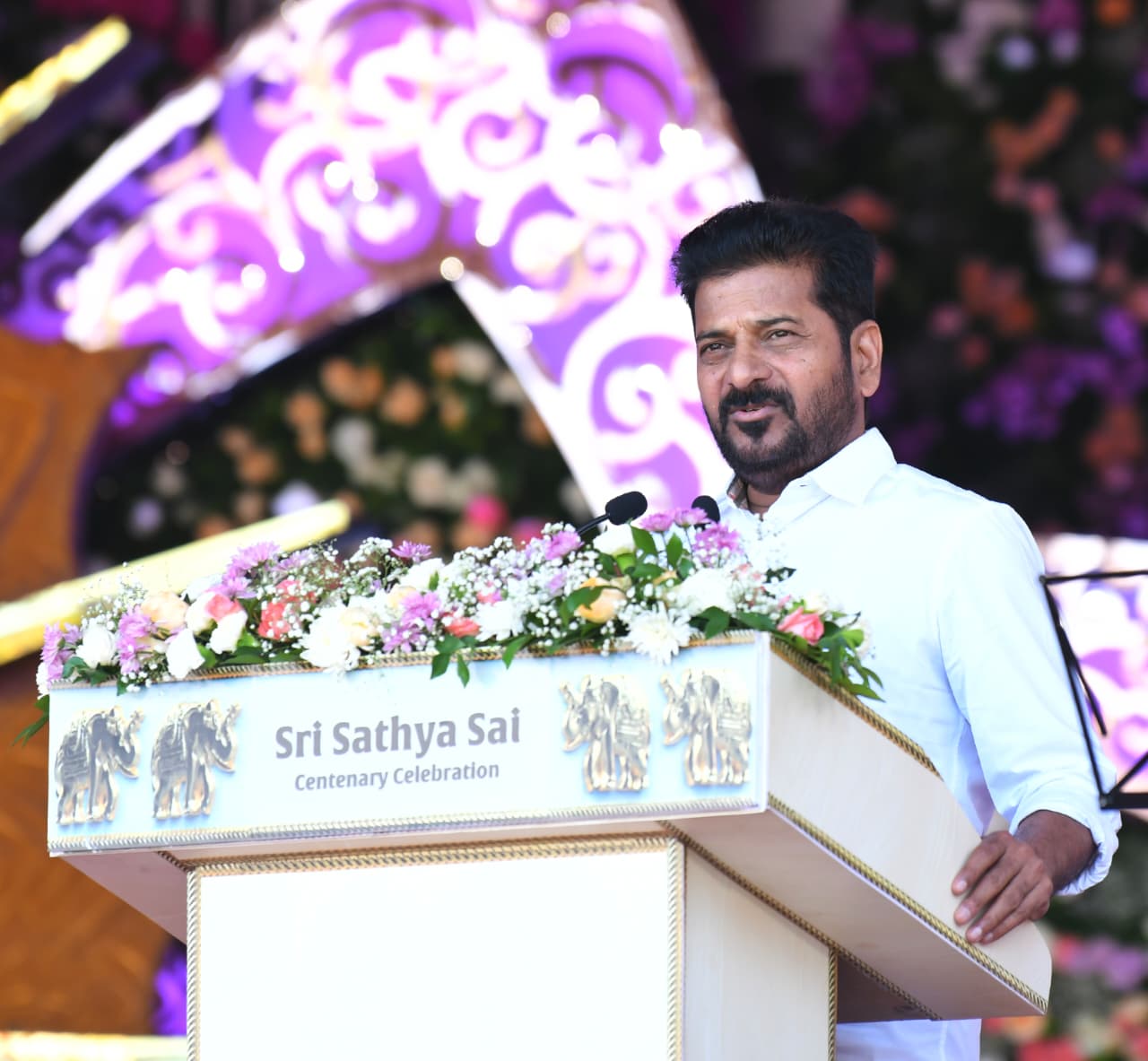 Telangana Chief Minister A. Revanth Reddy stated that the government is fully committed to spreading the ideals and teachings of Bhagawan Sri Sathya Sai Baba among the people. He recalled that the government has already issued official orders to conduct the Sri Sathya Sai Baba Centenary Celebrations on a grand scale. The Chief Minister participated in the centenary event at Puttaparthi’s Hill View Stadium, alongside India’s Vice President C.P. Radhakrishnan, Tripura Governor Nallu Indrasena Reddy, Andhra Pradesh Chief Minister N. Chandrababu Naidu, and Minister Lokesh. Speaking on the occasion, he described it as an honor to take part in the celebrations of a divine personality who served humanity selflessly.